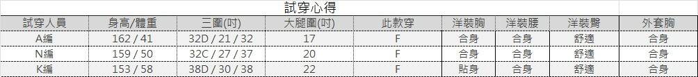| 全長 | 領寬 | 肩寬 | 胸寬 |
