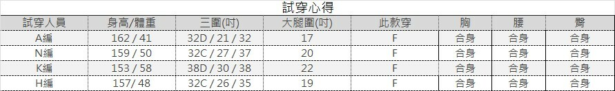 內裡:有 1.褲式內裡 2.分開式胸墊(不可拆) | |