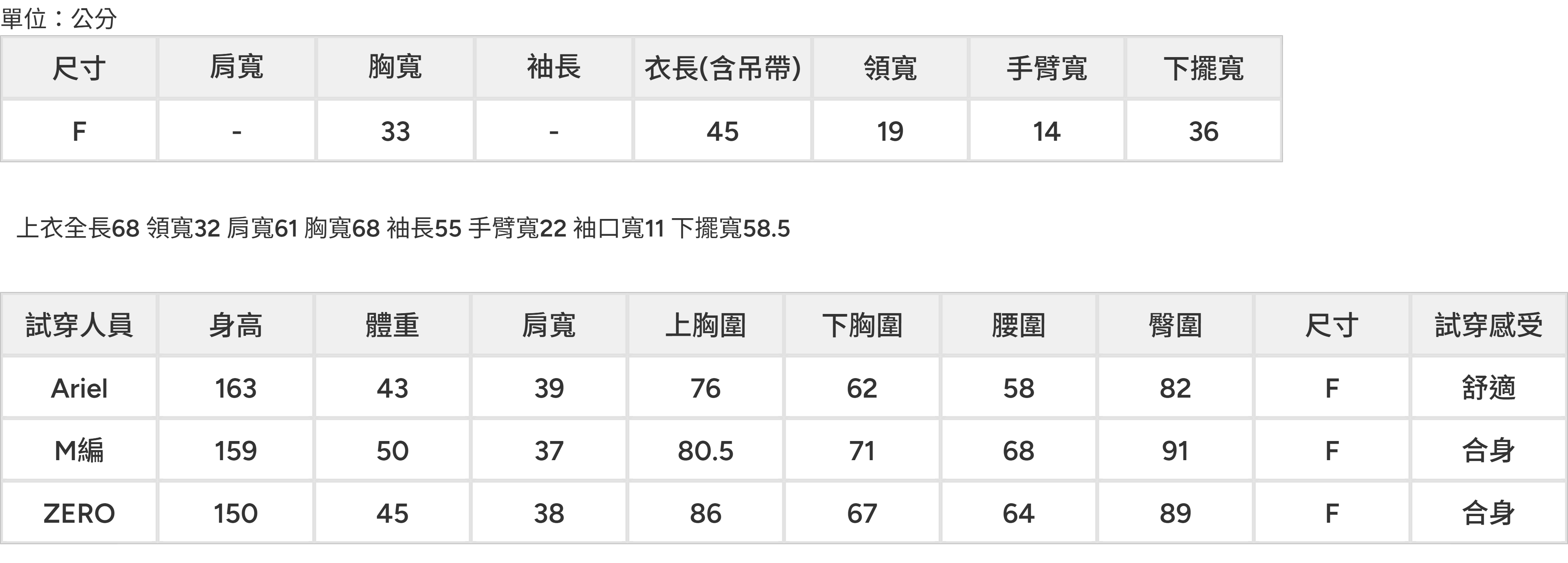 【內裡:分開式胸墊(不可拆)】